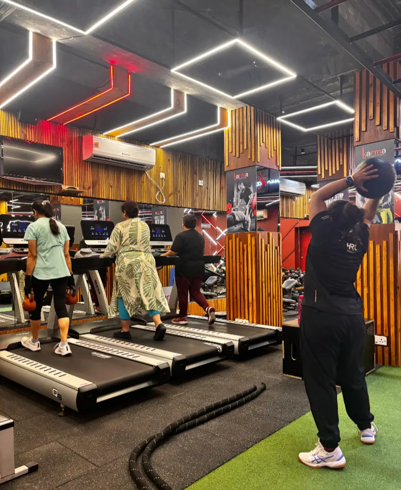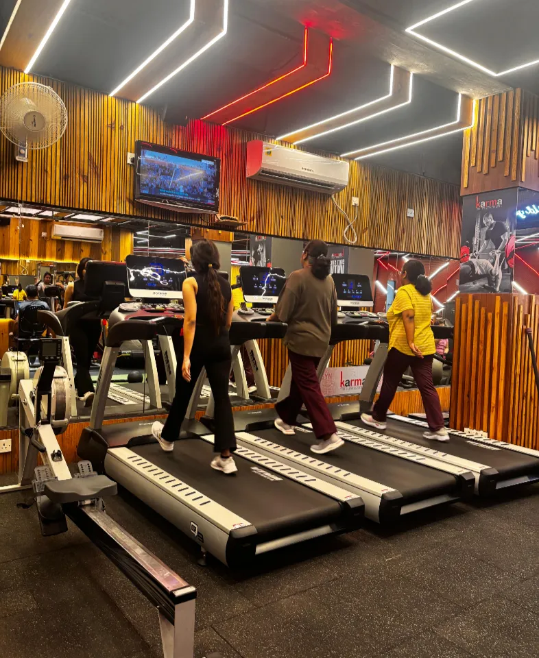 At Karma Fitness Studio we include each and every cardio activity on-board in order to ensure your fitness and metabolism. Our cardio trainers stay by your side during all the workout procedures and make sure you don’t take a wrong step doing the workout. We are well equipped with imported Cardio equipment which include treadmills, cross-trainers, arc-trainers, upright bikes, rowing machines, spin bikes and more.